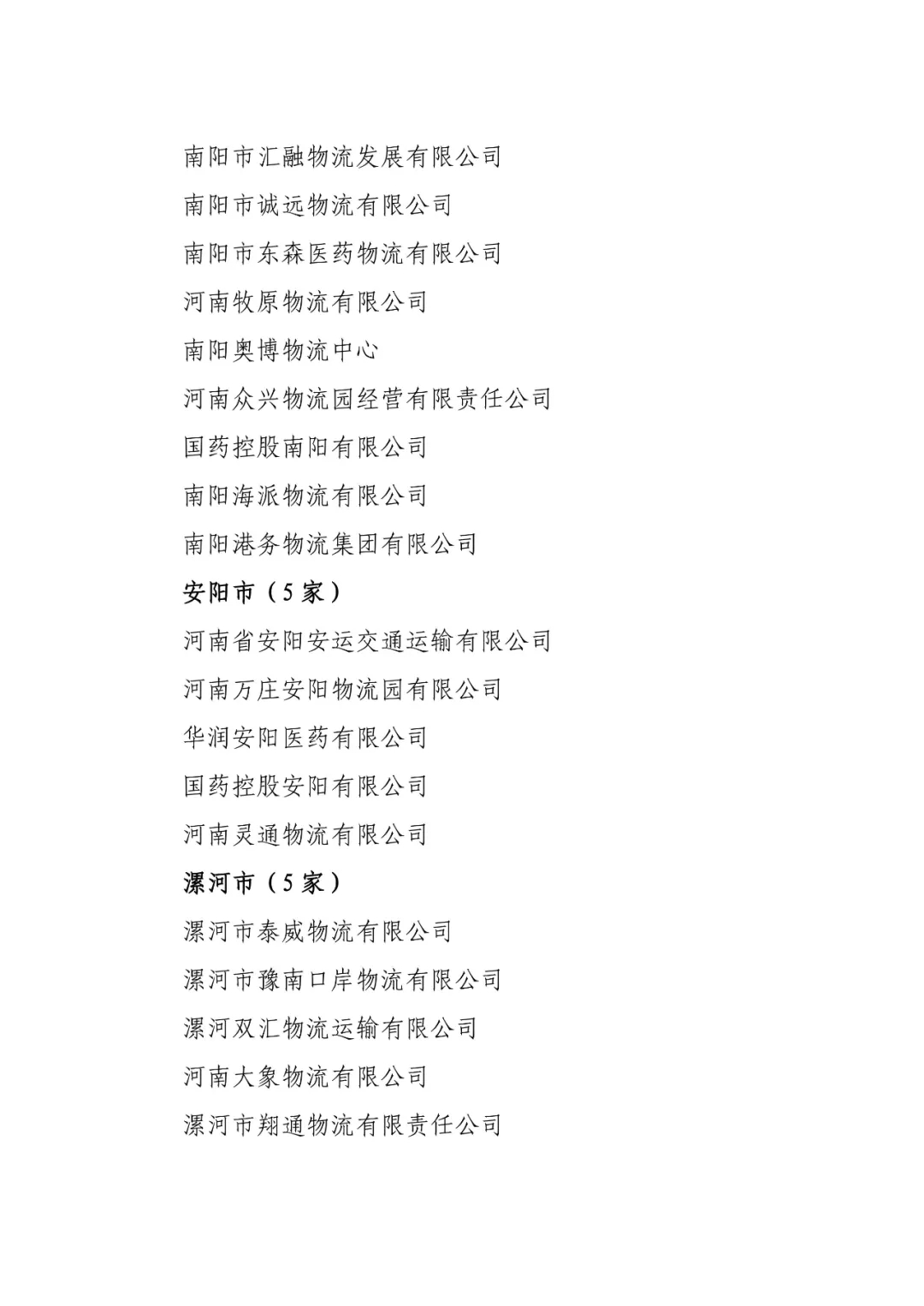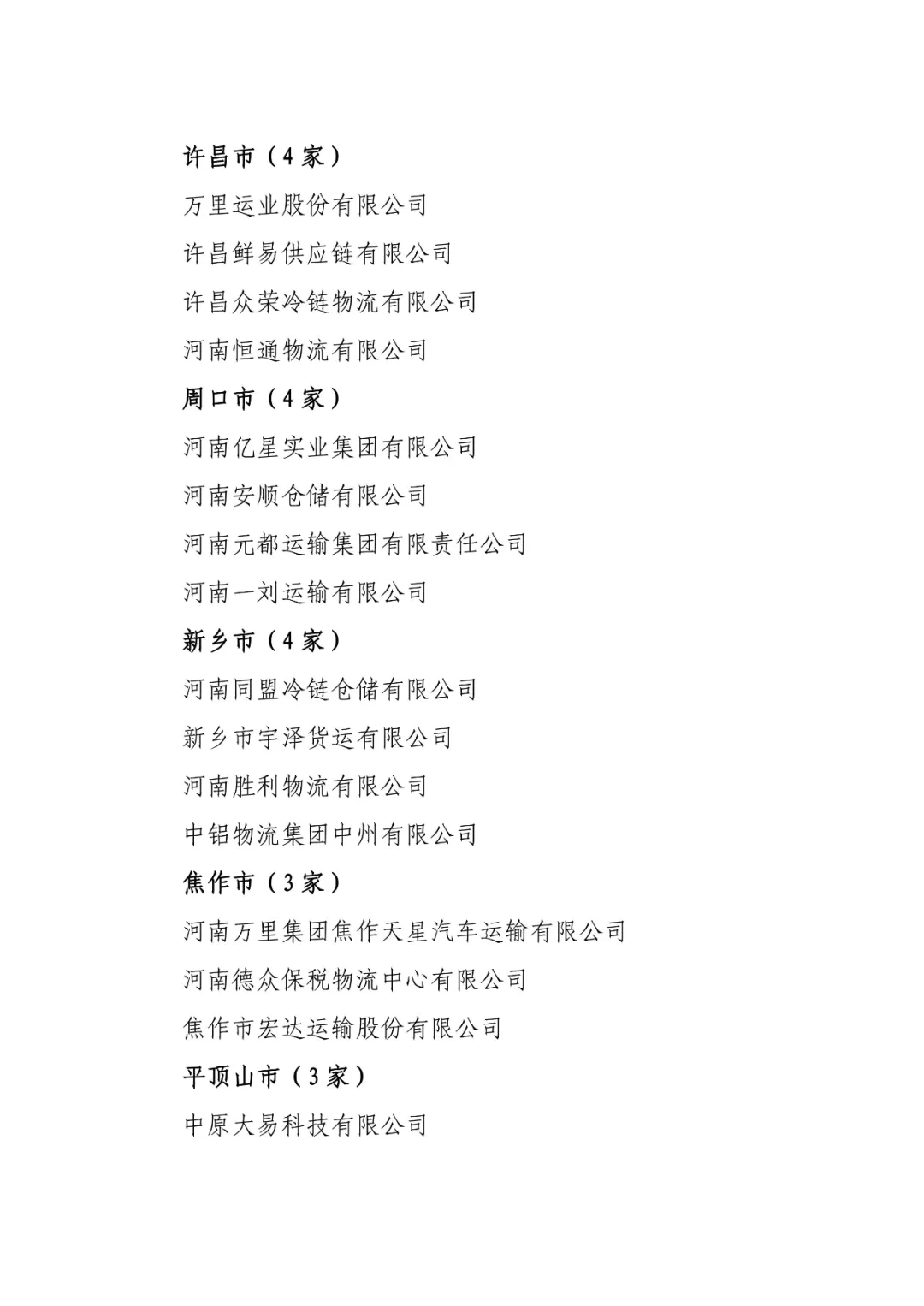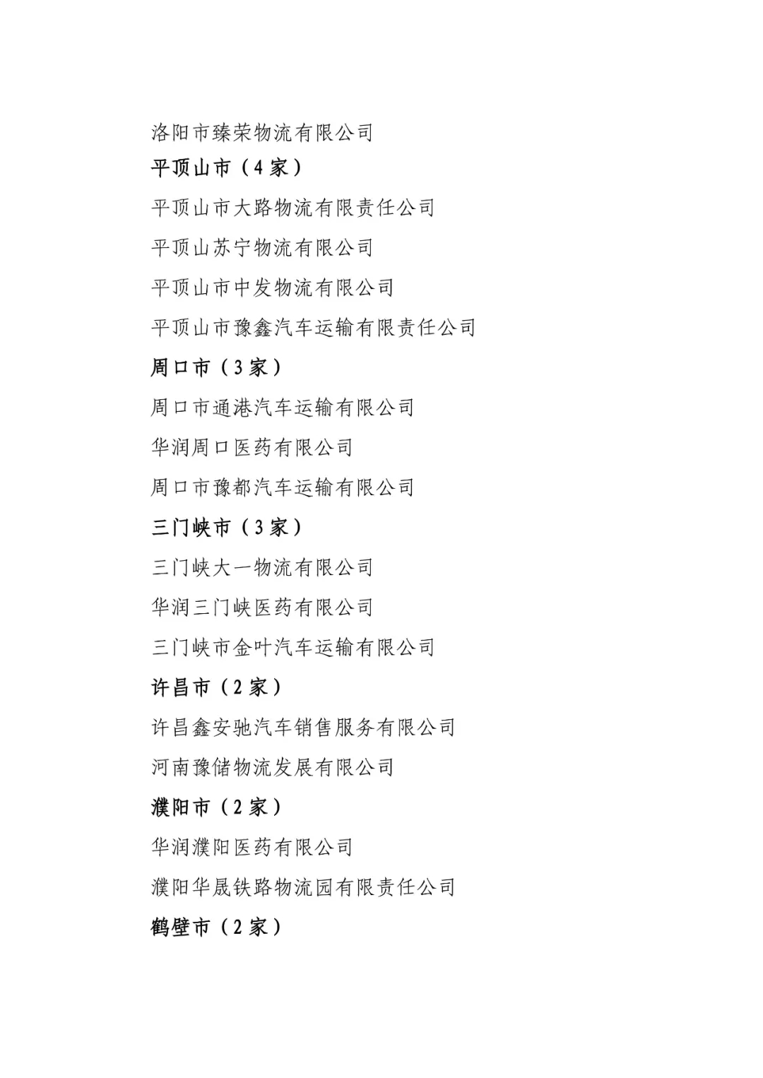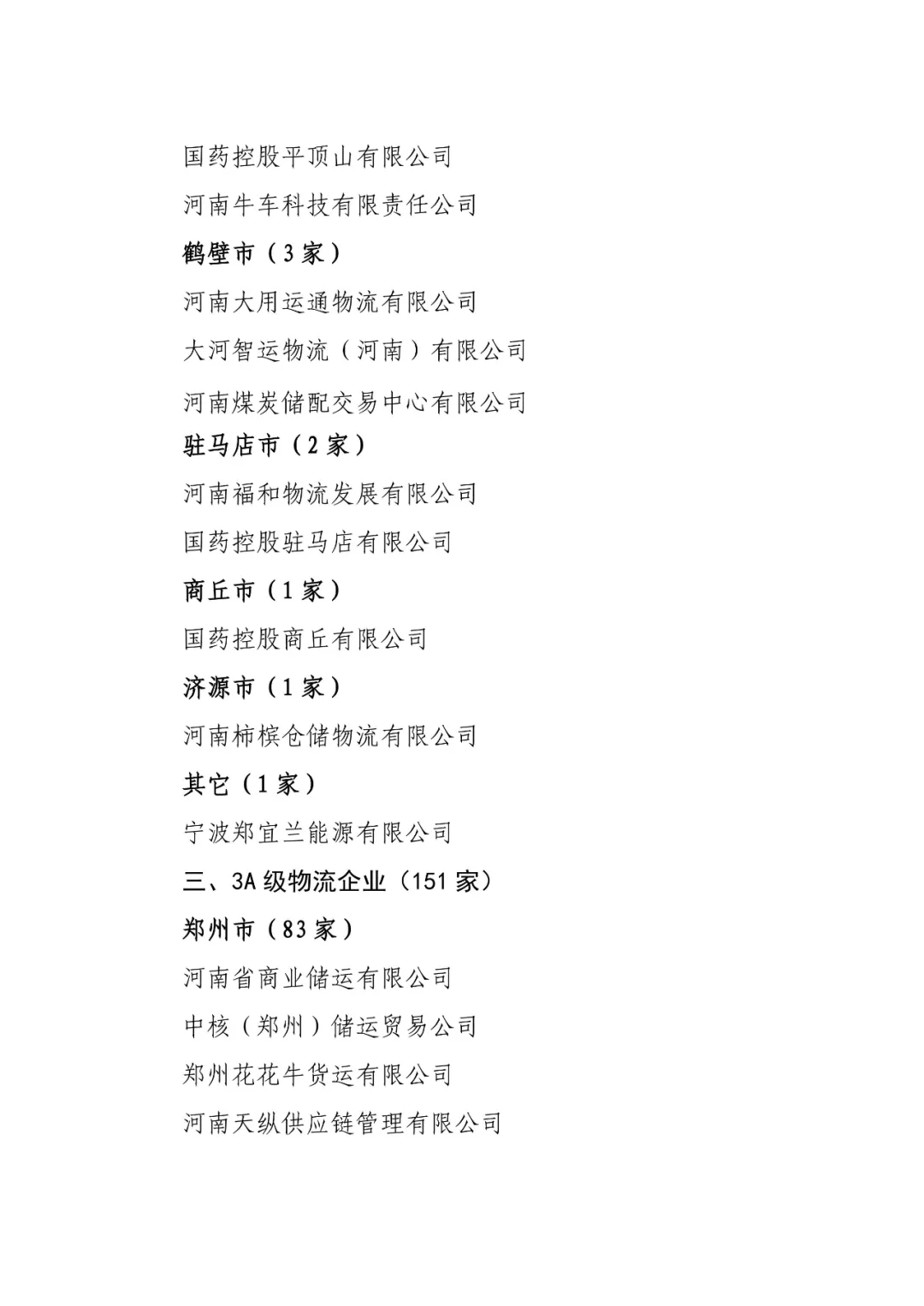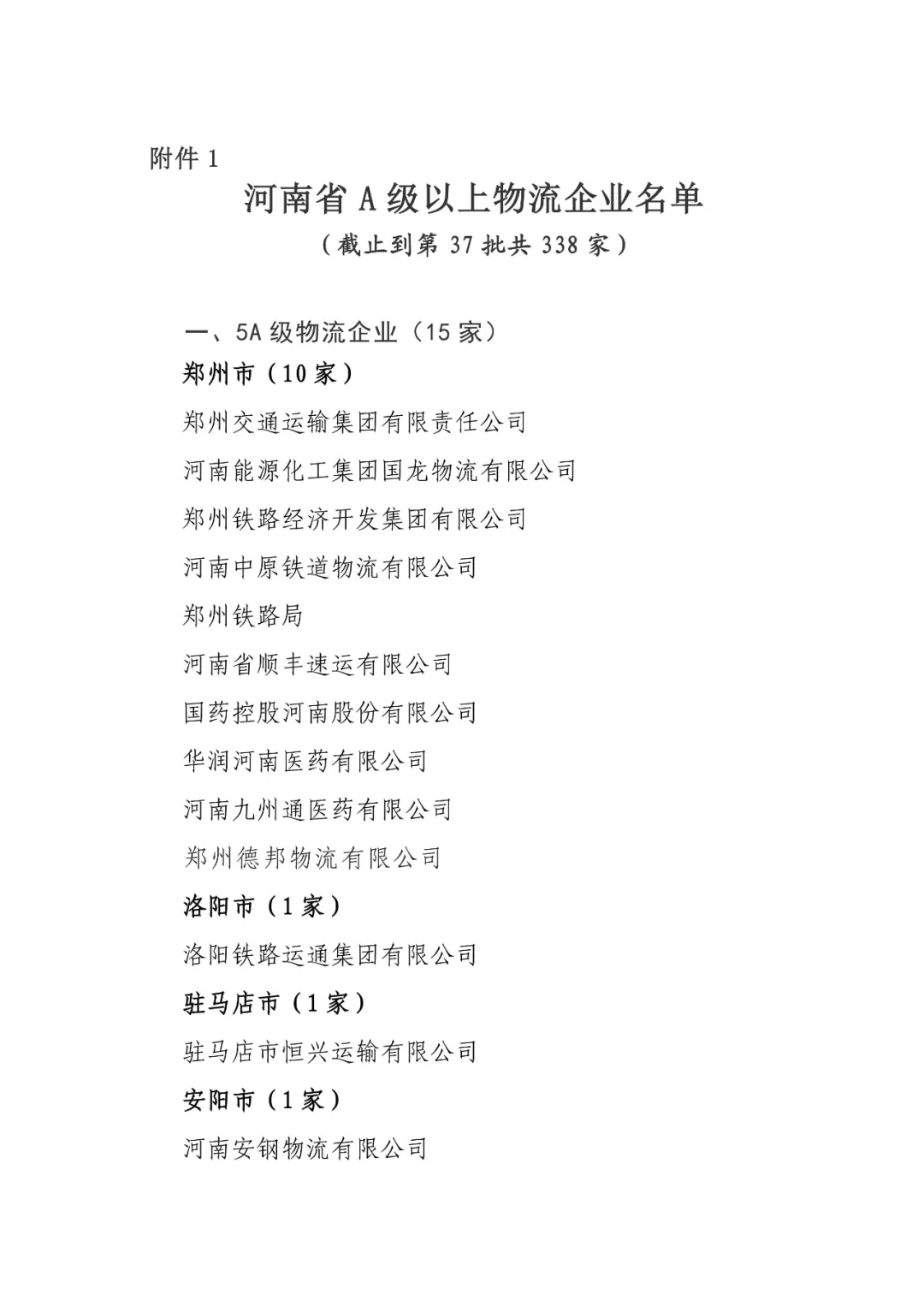关于印发河南省已通过A级以上综合评定物流企业名单的通知