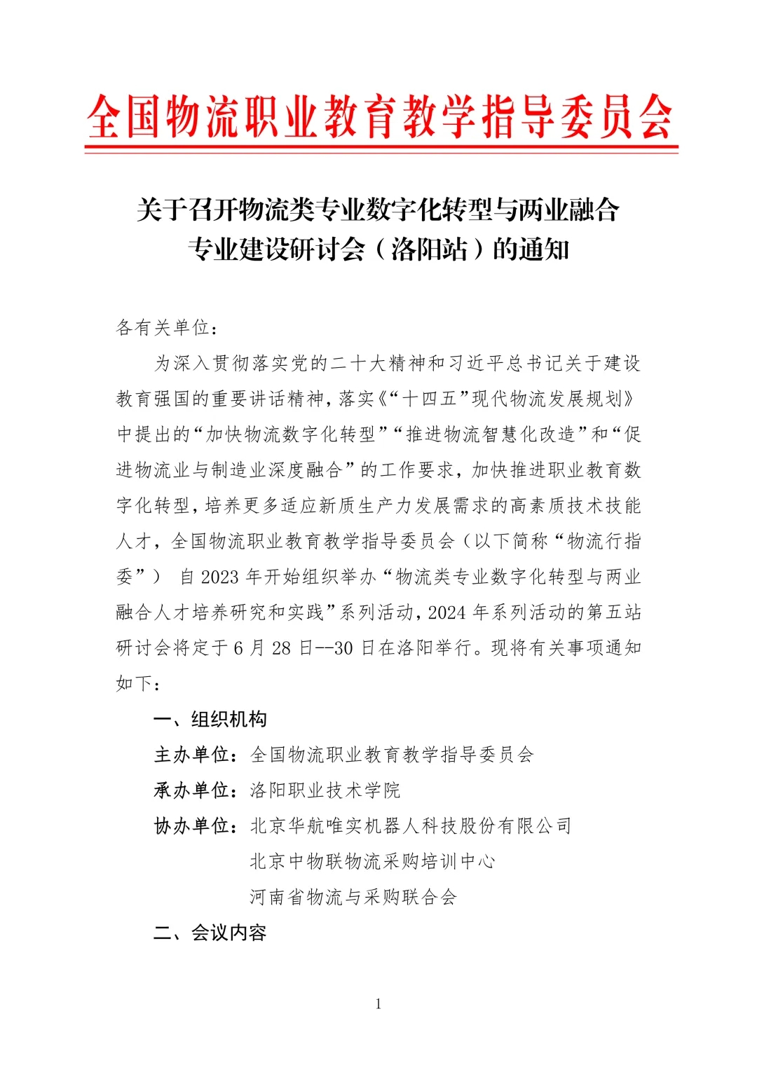 关于召开物流类专业数字化转型与两业融合专业建设研讨会(洛阳站)的通知