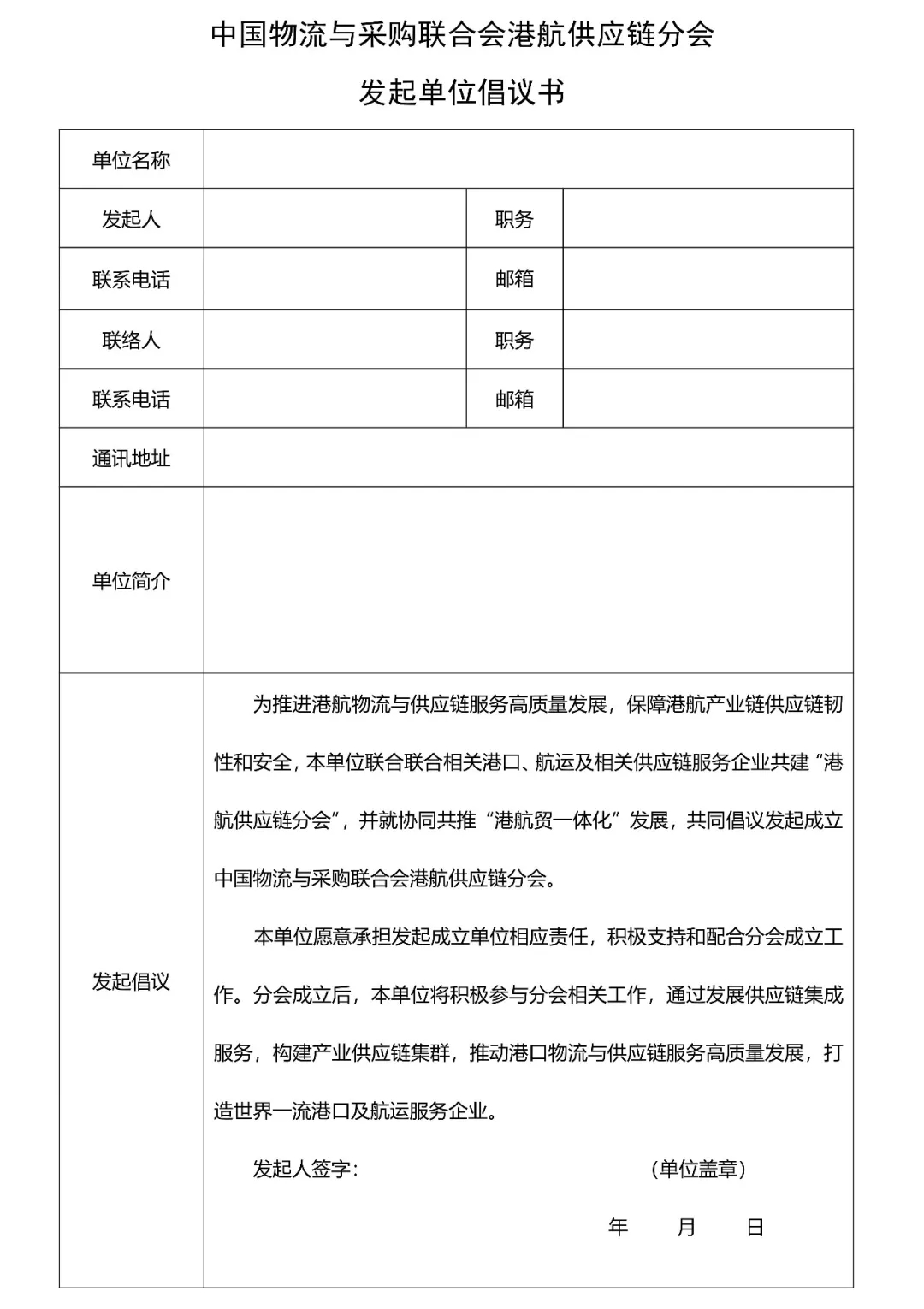 为推进我国港口、航运等企业发展供应链集成服务、推进“贸港航一体化”发展,助推我国港航供应链服务市场高质量发展,中国物流与采购联合会拟定于2024年9月11~12日,在南京举办召开2024年首届港航供应链发展大会,同期召开中国物流与采购联合会港航供应链分会筹备会。有关事项见附件。