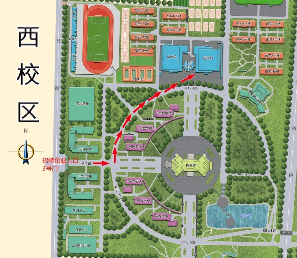 学校为本次双选会开放的入口为:河南工程学院龙湖校区西区3号门。参会车辆驶入校园后请减速慢行,行驶速度不得超过30公里/小时。入校路线如下:
