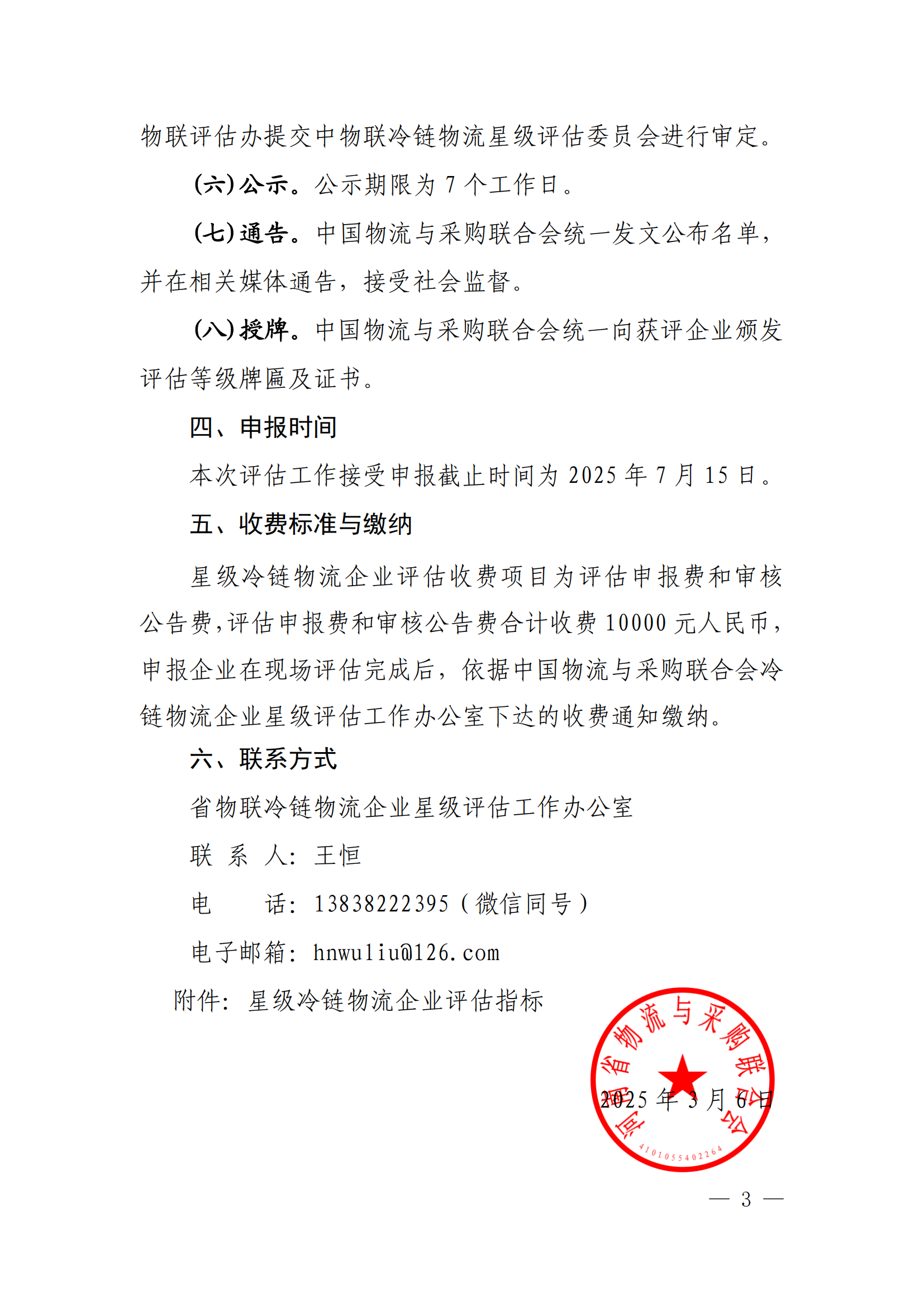 关于开展第二十批星级冷链物流企业评估工作的通知