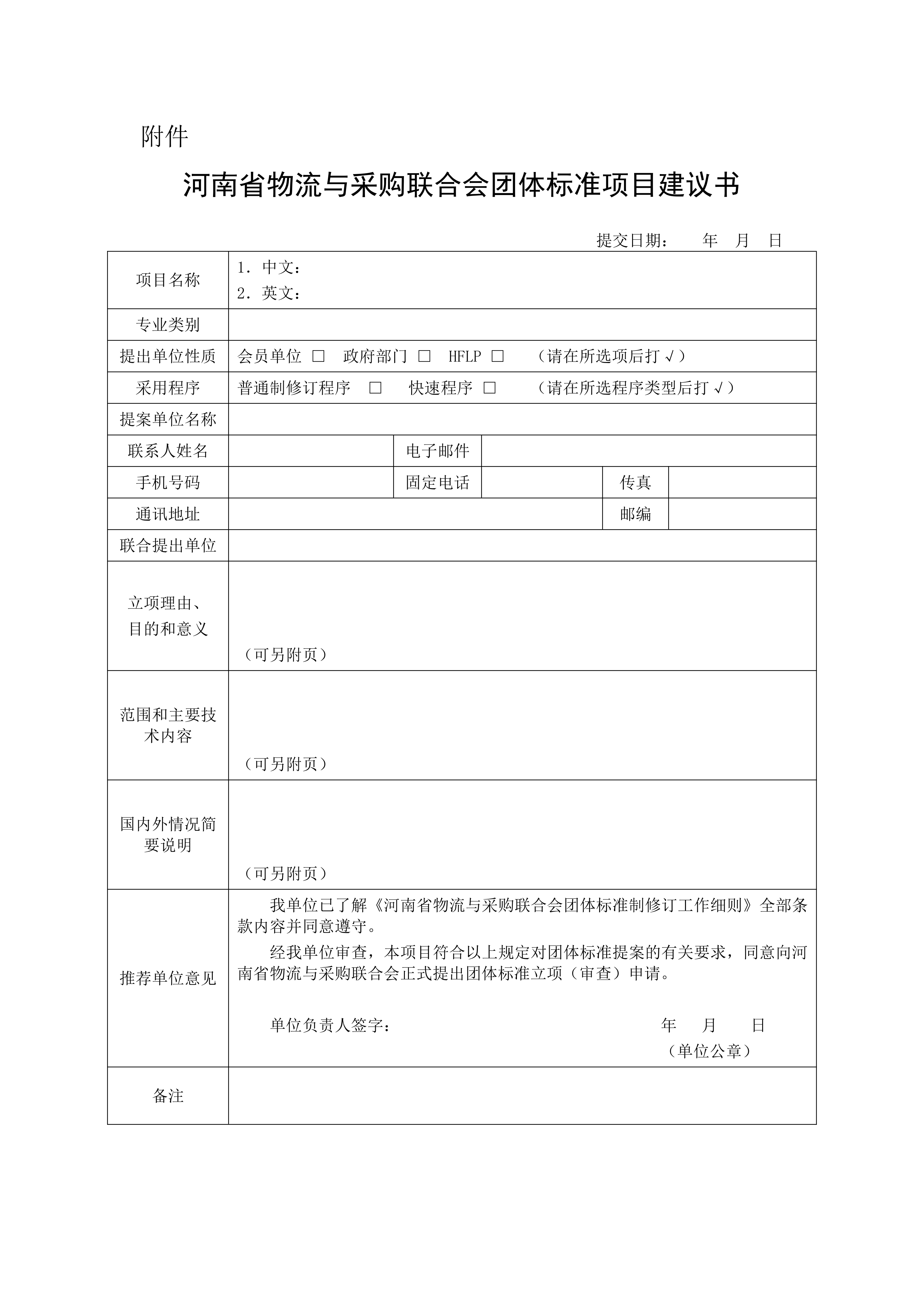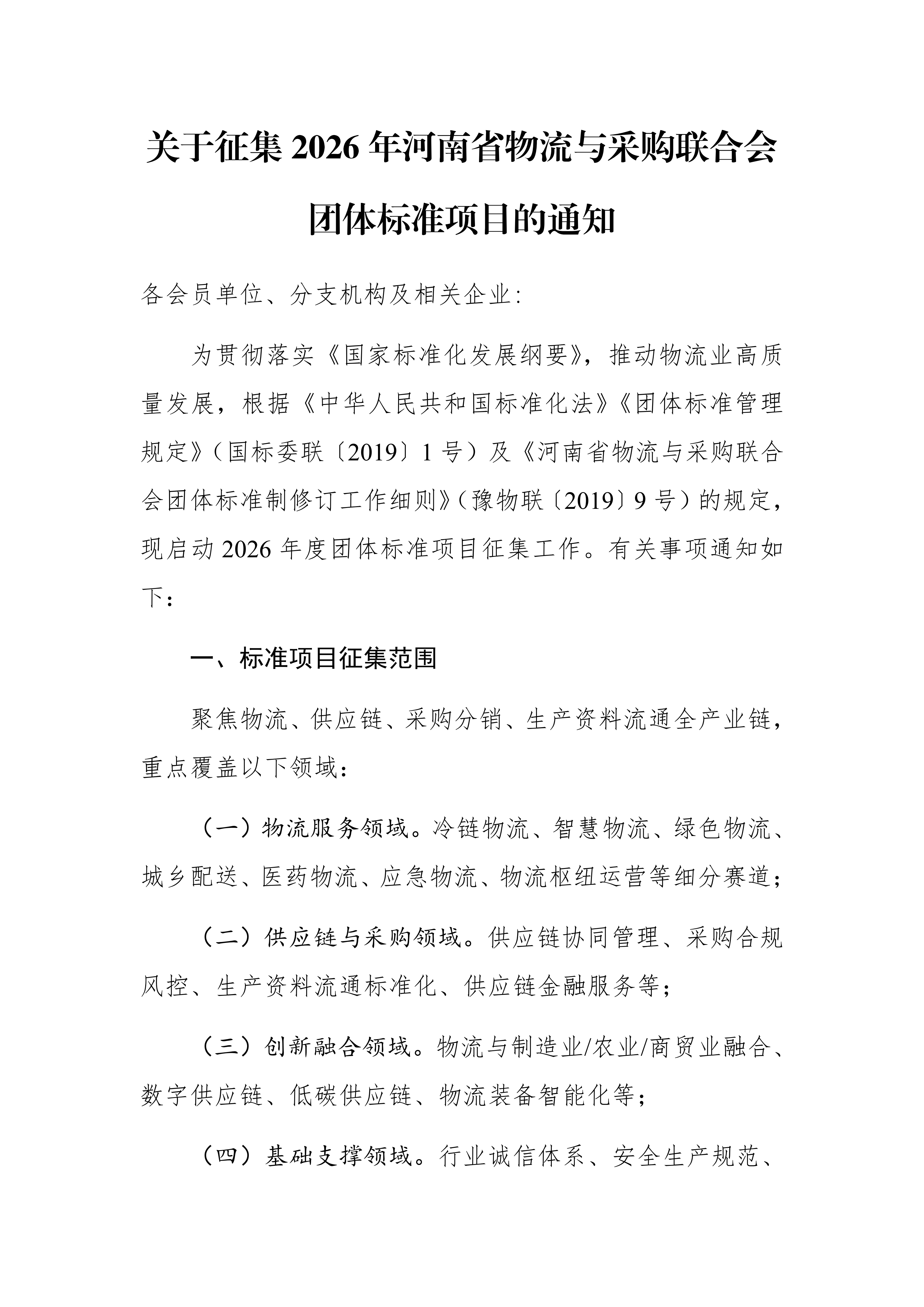 关于征集2026年河南省物流与采购联合会团体标准项目的通知