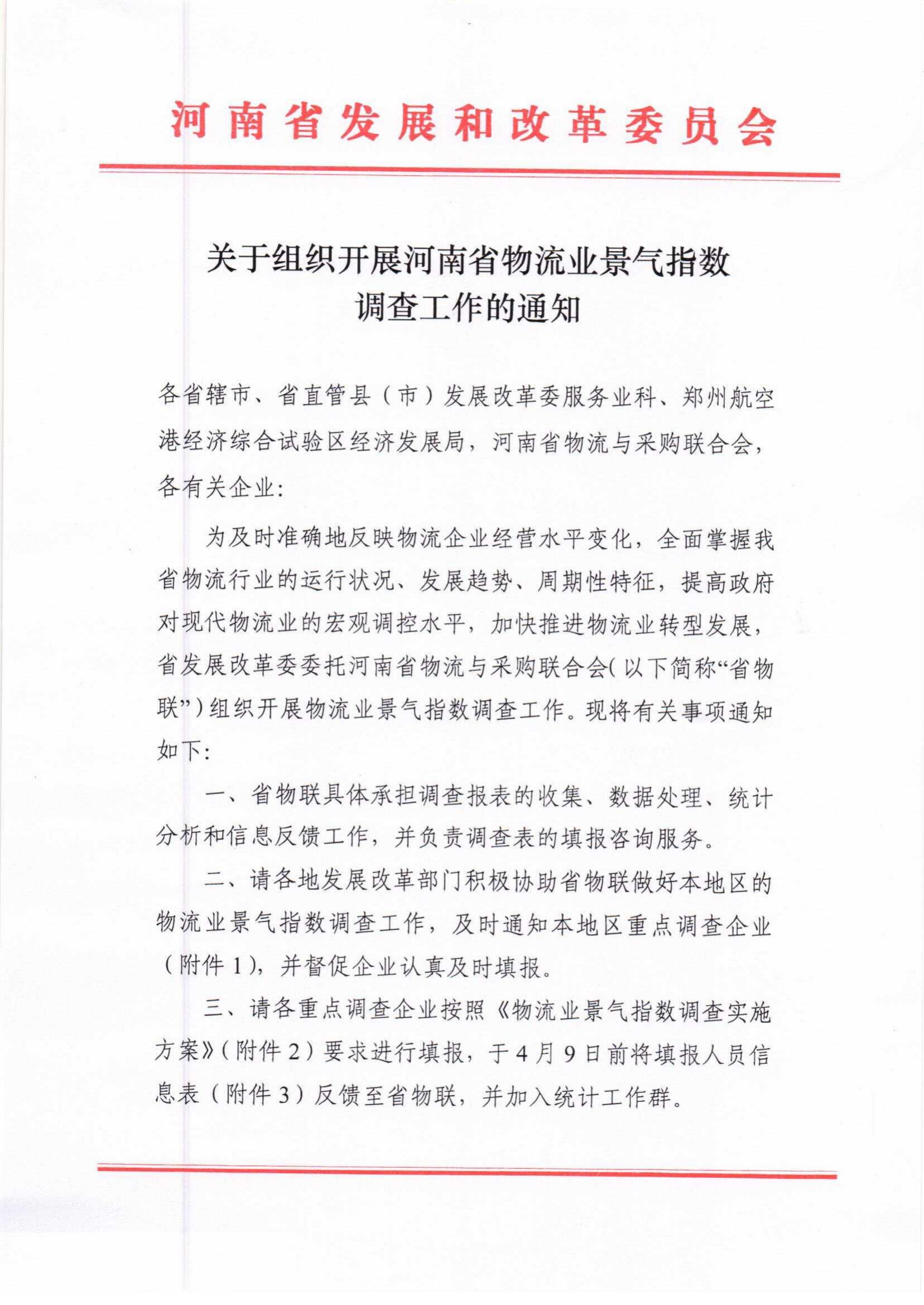 关于组织开展河南省物流业景气指数