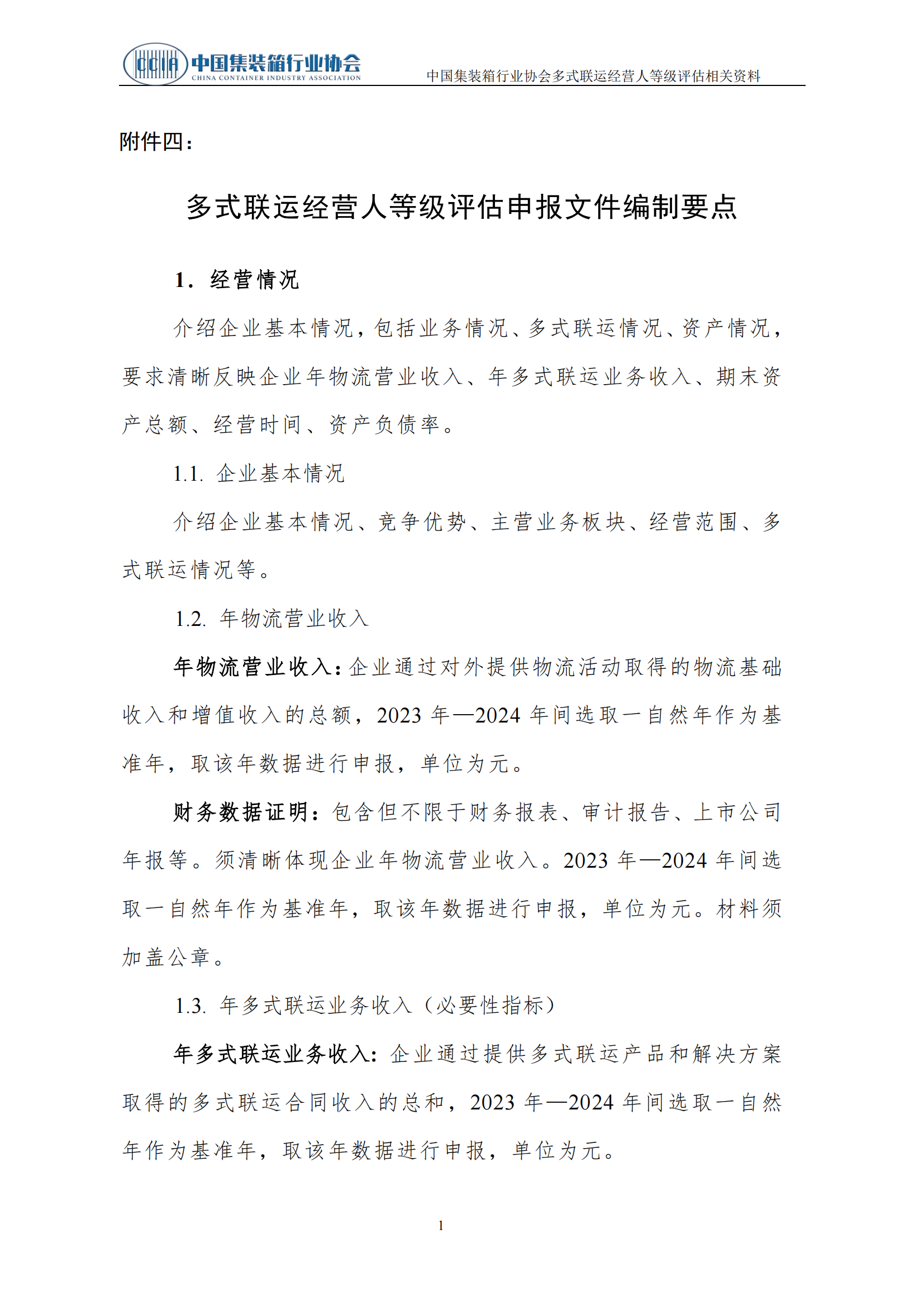 附件四:多式联运经营人等级评估申报文件编制要点