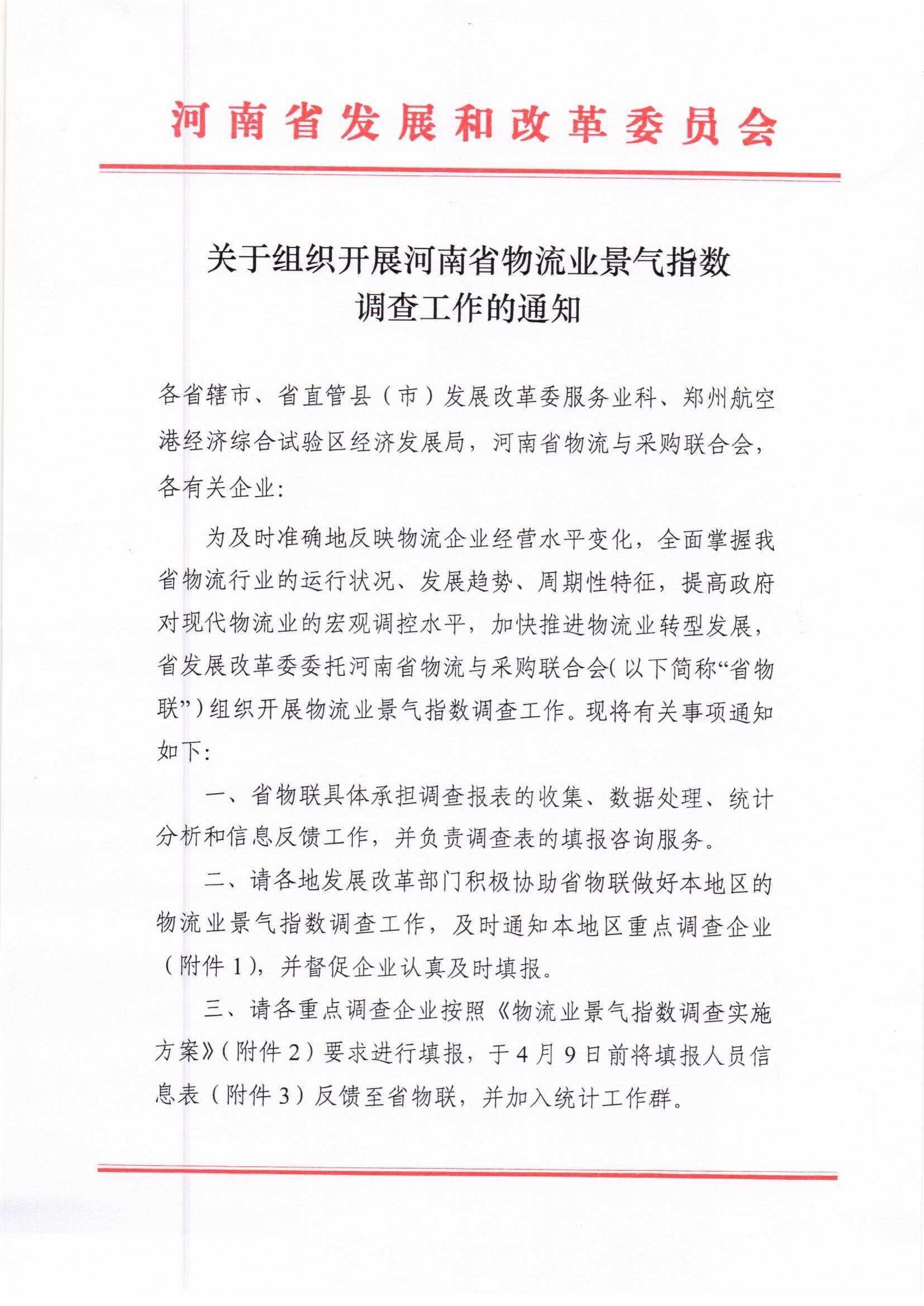 关于组织开展河南省物流业景气指数调查工作的通知