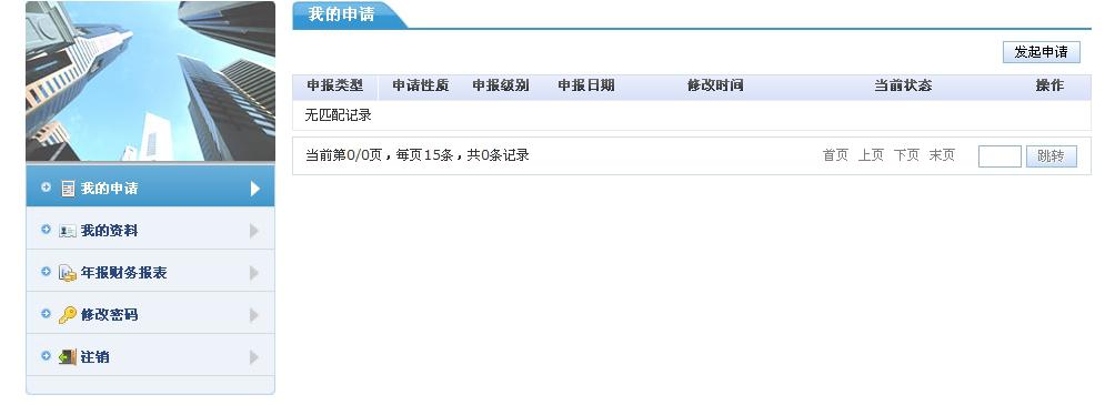 报表和资料填报完成并保存后,点击我的申请。并发起申请