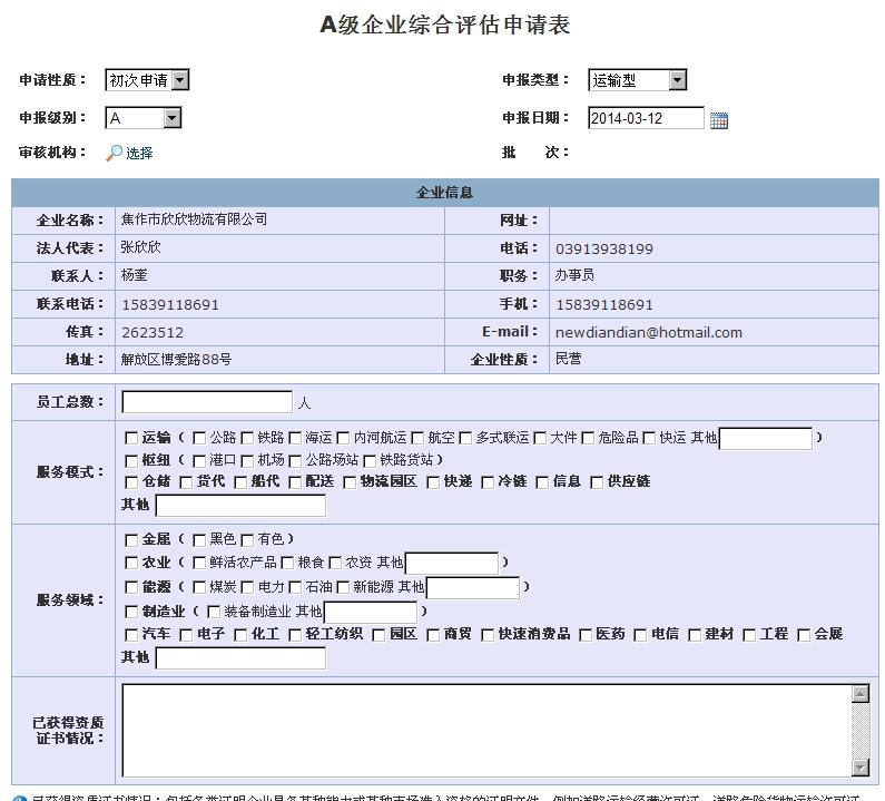 A级别物流企业评估网上信息填报说明