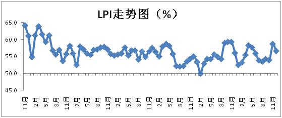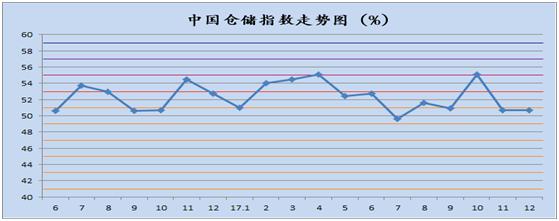 中国物流与采购联合会发布的2017年12月份中国物流业景气指数为56.6%较上月回落2个百分点;中国仓储指数为50.7%,与上月持平;中国公路物流运价指数为103.1点,比上月回落1.32%。
