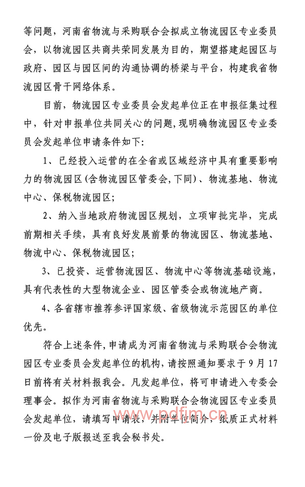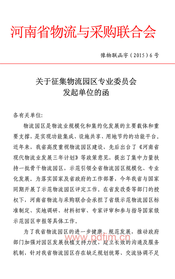关于征集物流园区专业委员会