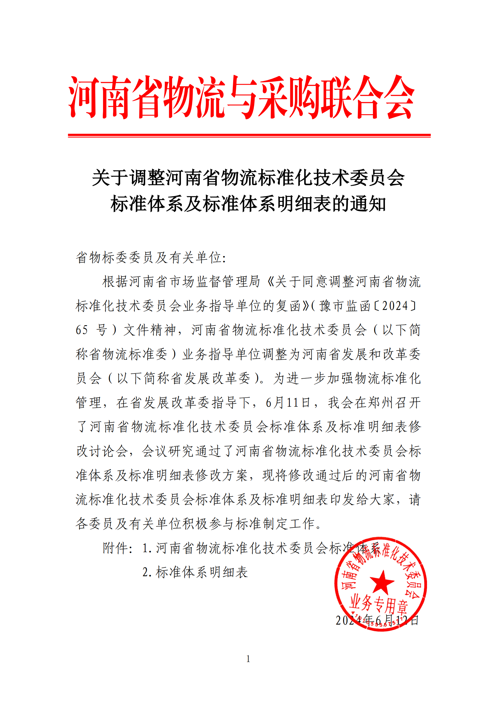 关于调整河南省物流标准化技术委员会标准体系及标准体系明细表的通知